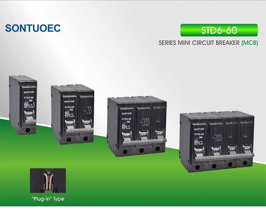 STD6 Series miniature circuit breaker applies to industrial, commerical, lighting and electric machine distribution system with AC120/415V, 50/60Hz, rated working current up to 100A to protect against overload and short circuit. The item is installed into plug-in type mounting base.